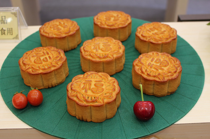 是在包餡料或在壓模的時候手粉使用太多,導致留在月餅的表面,月餅的表面會有一些白色的斑點,烘烤完成以后,斑點不會消失,當出售的時候,顧客會以為是月餅霉變了。解決的方法:1.少用一些手粉;2.在烘烤之前,在月餅生坯的表面噴上少量的水,用水將面粉打濕,使其顏色看不見。
