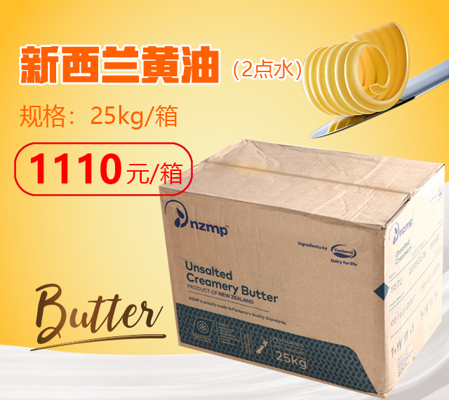 2、新西蘭黃油,規(guī)格25kg/箱,價格為1110元每箱;