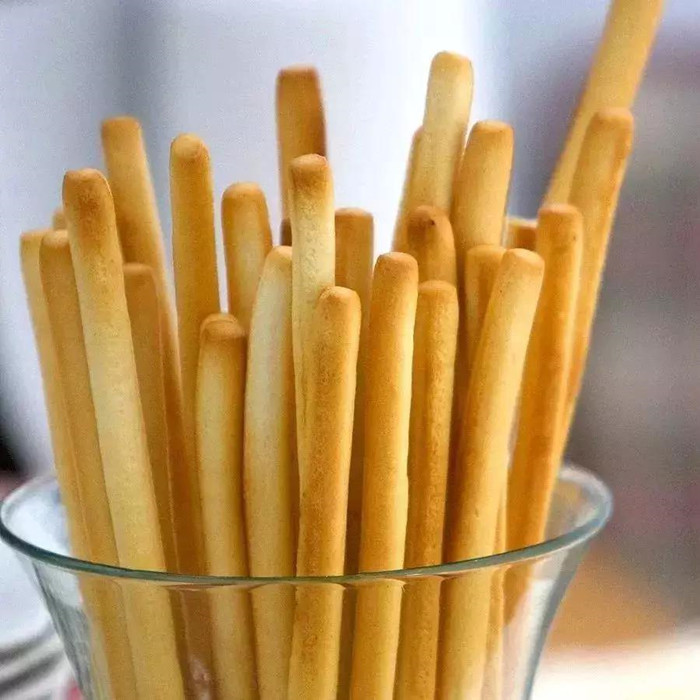 Grissini外形像是手指粗細的棍形餅干,但它其實是一種棍式面包,制作時需加入酵母。最初是面包師利用各種臨期面團制作出來的,水分含量較少,保質(zhì)期也相對長些,一經(jīng)推出很快風(fēng)靡全國,成為了意大利的著名面包。