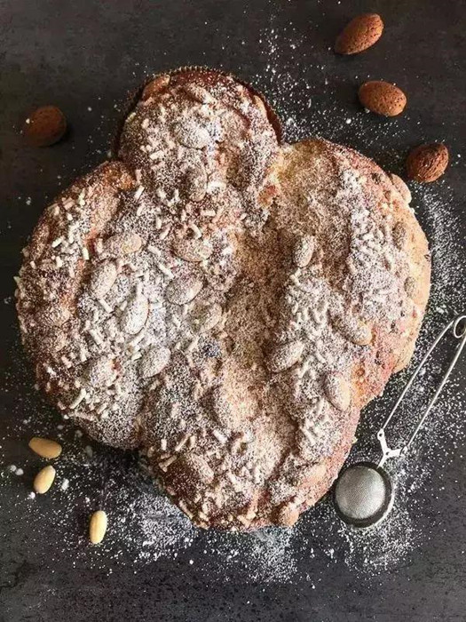 Colomba是一款外形飽滿的甜酵母面包,也是意大利一款聲名遠揚的節(jié)日面包,是復(fù)活節(jié)必備的傳統(tǒng)食物。意大利的人們會將科倫巴面包制作成象征和平的鴿子形狀來紀念復(fù)活節(jié),表面會灑滿杏仁,看上去就很好吃。
