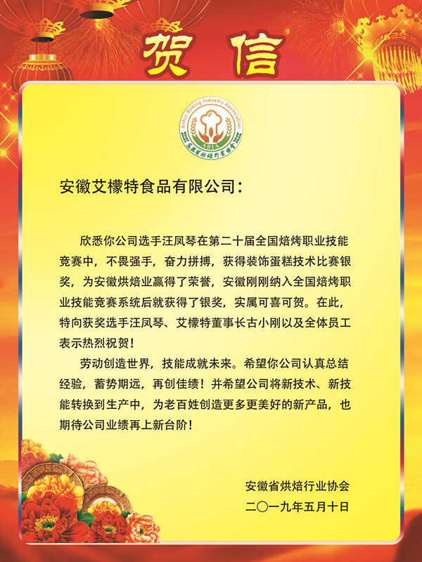安徽選手獲得第二十屆全國(guó)焙烤職業(yè)技能競(jìng)賽裝飾蛋糕技術(shù)比賽銀獎(jiǎng)