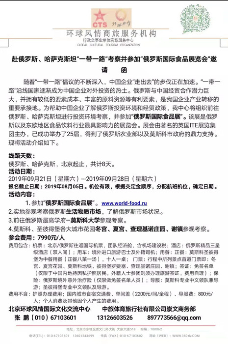赴俄羅斯、哈薩克斯坦“一帶一路”考察并參加“俄羅斯國際食品展覽會”邀請函