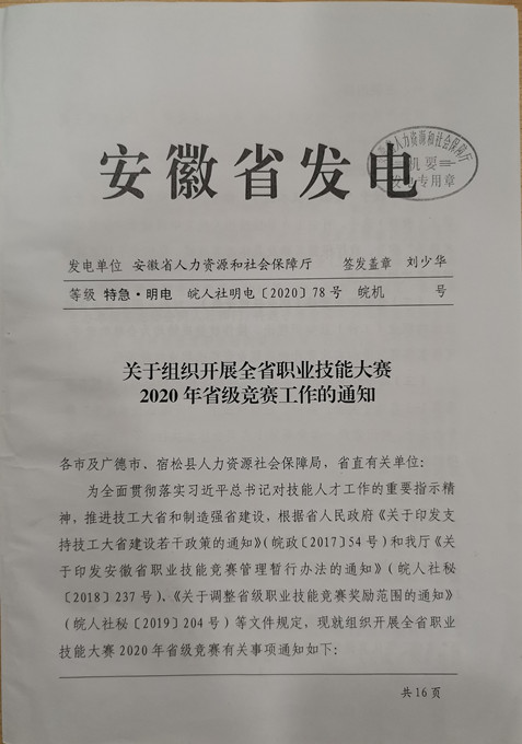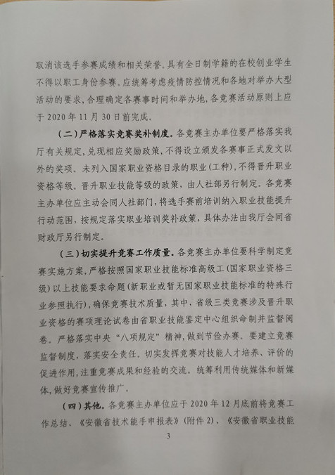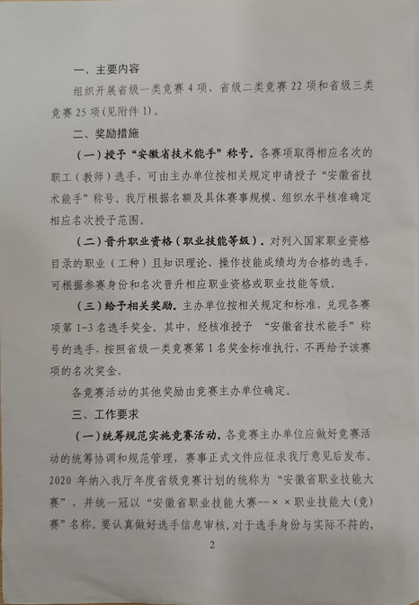 關(guān)于組織開展全省職業(yè)技能大賽2020年省級競賽工作的通知