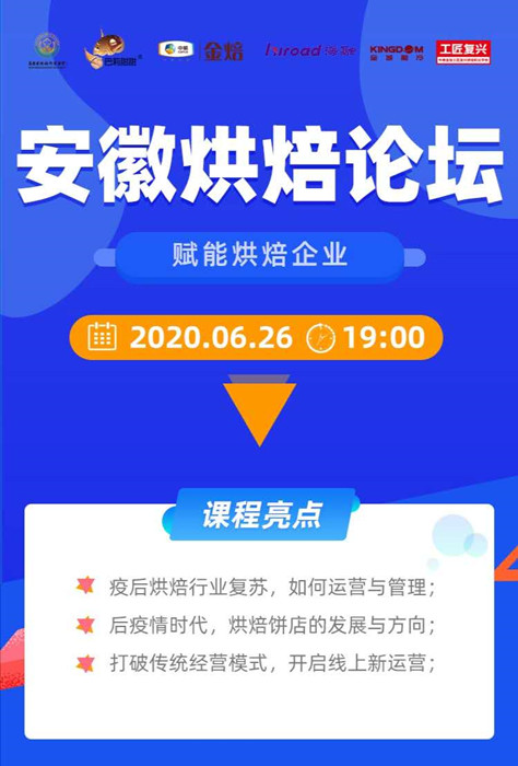 疫后烘焙行業(yè)復蘇,如何經(jīng)營與管理?后疫情時代,烘焙餅店對發(fā)展與方向?如何打破傳統(tǒng)經(jīng)營模式,開啟線上新運營? 由安徽省烘焙行業(yè)協(xié)會、安徽采蝶軒蛋糕集團聯(lián)合中糧金焙工匠復興烘焙職業(yè)學校舉辦的“賦能烘焙企業(yè)?安徽烘焙論壇”將于2020年6月26日19:00上線開講!屆時烘焙大咖、中糧金焙工匠復興烘焙職業(yè)學??傌撠熑颂K焜等嘉賓,將在直播間為您解惑答疑,精彩紛呈,敬請期待!