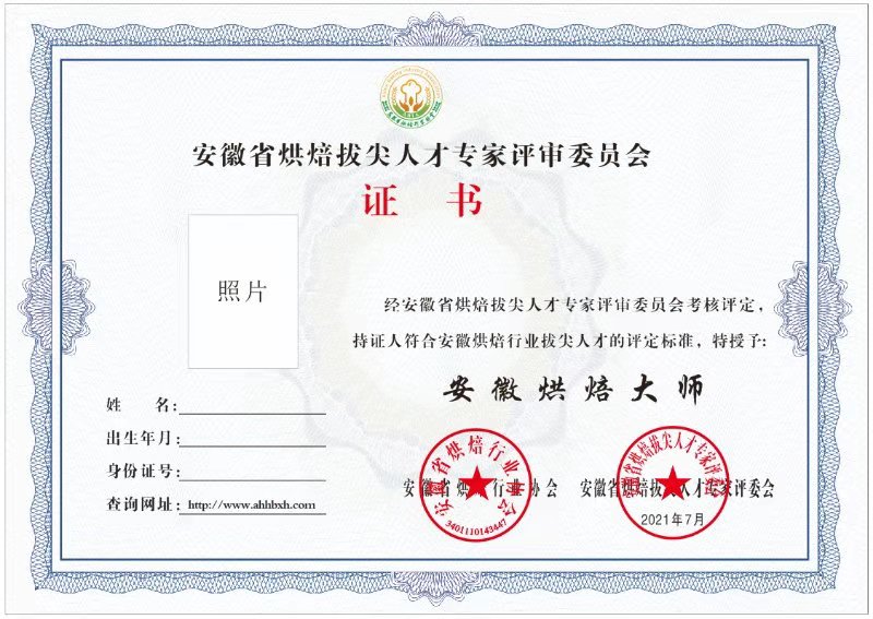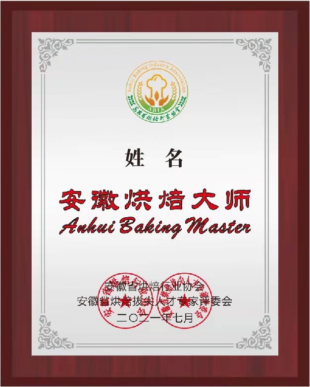 安徽烘焙大師(名師)金牌、證書樣式公布