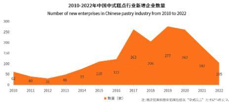 隨著大量資本的入局,中式糕點(diǎn)市場逐步擴(kuò)大,而與此同時,市場競爭也更加激烈。2010-2022年,受國潮興起及傳統(tǒng)手藝愈受重視等影響,中國中式糕點(diǎn)企業(yè)數(shù)量起伏略大,2019年企業(yè)注冊量達(dá)到頂峰;而后三年企業(yè)數(shù)量下降明顯,2022年新增企業(yè)數(shù)為105家,中式糕點(diǎn)賽道競爭激烈。