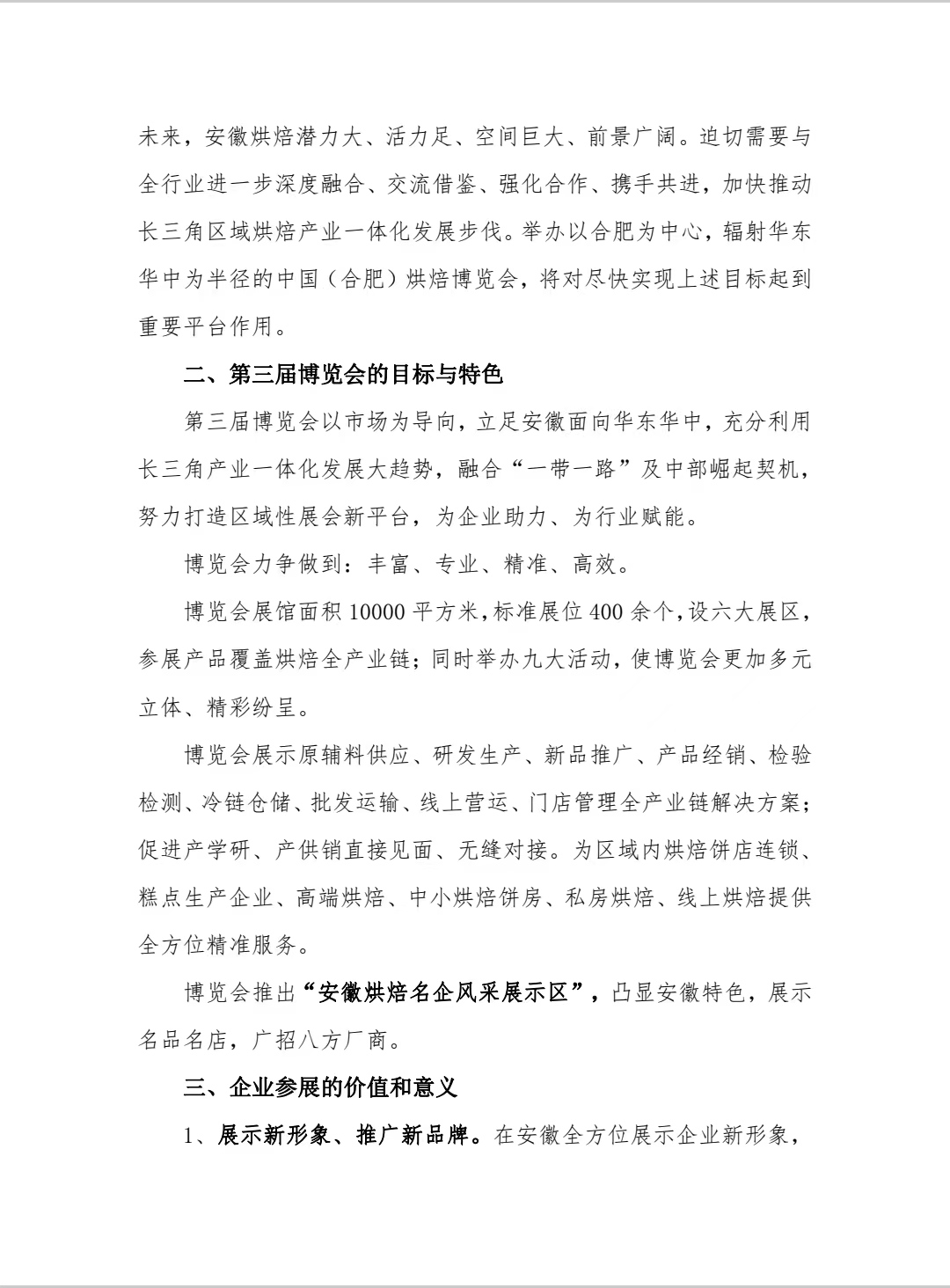 希望廣大會(huì)員單位積極響應(yīng),踴躍報(bào)名參展參觀,努力做大安徽烘焙,惠及所有會(huì)員企業(yè),詳情見(jiàn)以下文件。