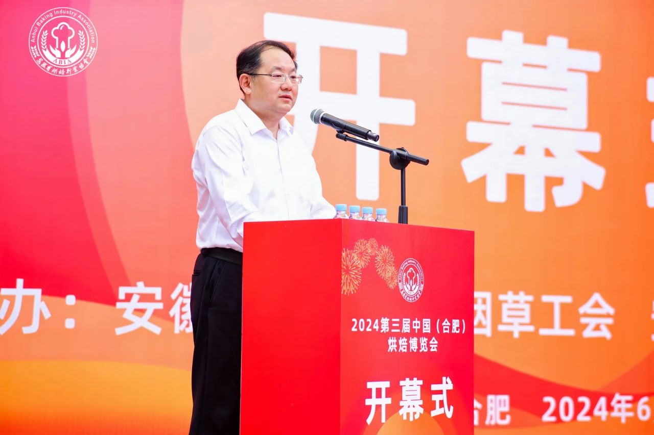 2024年6月14日上午9點58分,由安徽省財貿(mào)輕紡煙草工會、安徽省烘焙行業(yè)協(xié)會主辦的2024第三屆中國(合肥)烘焙博覽會在濱湖國際會展中心舉行了盛大的開幕儀式,省市領(lǐng)導(dǎo)、企業(yè)代表、商協(xié)會嘉賓、協(xié)會領(lǐng)導(dǎo)等近百人出席。
