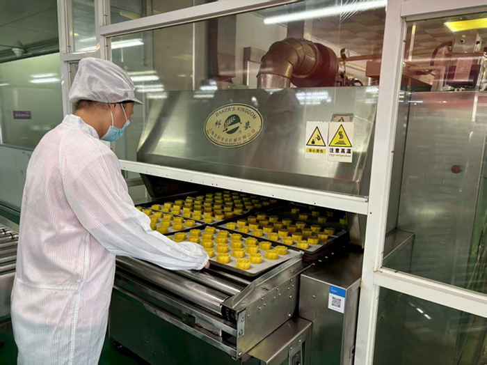 走進生產(chǎn)車間,工人正有條不紊地制作月餅,經(jīng)過一道道工序,新鮮烤制的月餅順利出爐。據(jù)了解,首批月餅近期將陸續(xù)在巴莉甜甜門店上市銷售。